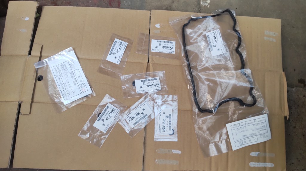 交換部品です、サクサク調整が終わり部品の交換を行いましたが、なんと液体ガスケットが完全に固着・・
